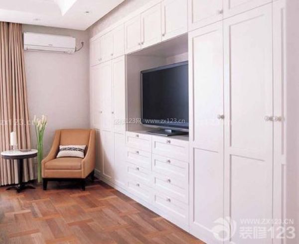 現(xiàn)在很多家庭都有兩臺電視機(jī),第二臺一般都放在臥室,將其懸掛在墻面是最常見的做法,節(jié)省空間的同時(shí)也填補(bǔ)了墻面的空白。如果臥室空間足夠大的話,懸掛并不是唯一的解決方法。整面墻的柜子可以擁有儲物柜和電視柜的雙重身份,收納衣物的同時(shí)也為電視保留了一席之地。臥室空間沒有被隨意揮霍,而是充分利用起來。都說魚和熊掌不能兼得,其實(shí)只要經(jīng)過精心規(guī)劃,儲物和娛樂也能做到兩全其美。