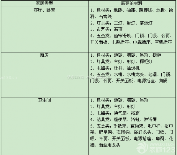 在設(shè)計師畫出圖紙后,業(yè)主就要計算材料費了,一般來說,裝修必須用的材料包括: