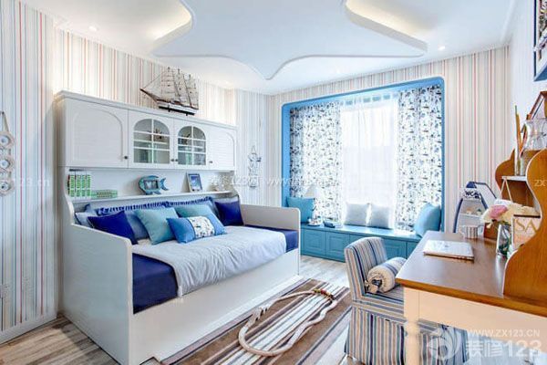 異域風情展現在家居上會給人一種不同的感受,配上地中海本身具有的唯美和干凈,應用在兒童房內則會不由自主的生出一種看似簡單的色彩實則溫馨的環境,孩子需要這樣的溫馨的感覺,而地中海風格兒童房設計實現了這一目標,為孩子打造了一個精彩的房間,讓孩子每天都生活在輕松的環境中。