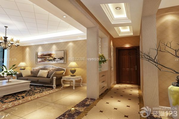 2、天花劃分:可以通過天花造型的區別來界定門廳的位置。