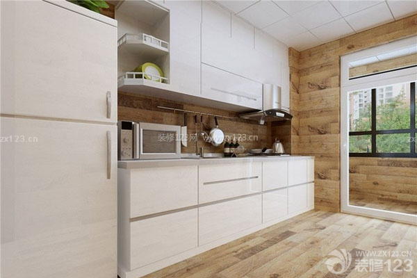 廚房以白色為主要色調(diào),地板紋理的瓷磚搭配白色的櫥柜,看起來干凈整潔,配以綠色的植物和餐具,仿佛身處原生態(tài)的大自然當中,做飯的時候簡直是一種美好的享受。