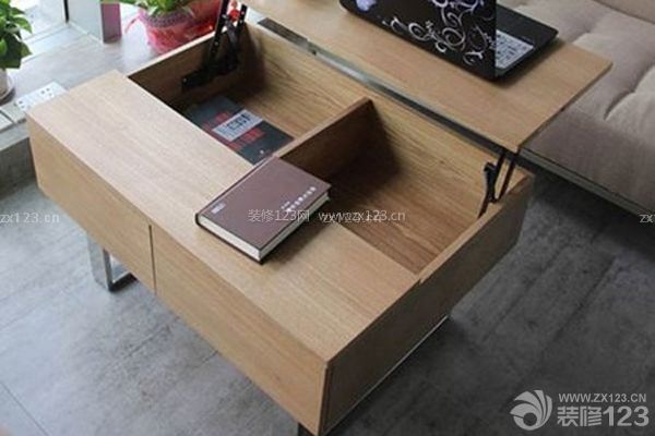 這款茶幾給人的感覺不僅僅是金玉其外,內部也是別有洞天。掀開面板,里面是分隔為兩部分的收納倉,而掀開的面板同時也可以當作小桌板來使用,是不是實用性超強呢。