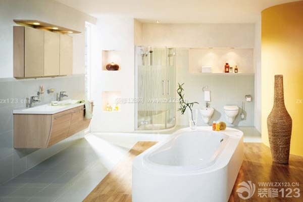 小空間雖然不必追求奢華,但同樣需要在達到基本要求的同時,完成審美上的情趣。就算衛浴間的面積不是很大,也可以設計得非常別致。巧妙地應用隔斷將盥洗區與淋浴區分開,充分展示了衛生間的整潔有序,在空間運用上更顯得靈活而緊湊;木質防水地板的應用體現了整個衛生間的自然、大方;色彩仍然以純凈為主調,大面積地運用白色和檸檬色,看上去干凈而富有朝氣。
