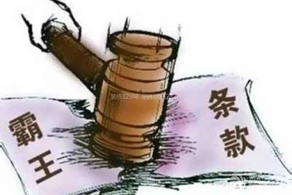 如“甲方對合同中已確定的工程項目提出減項時,如未開工的須向乙方支付該項目款5%的減項費”,“簽單后如因甲方原因發生退單,公司收取其工程款的20%作為違約金”等霸王條款均違反新《消費者權益保護法》規定。