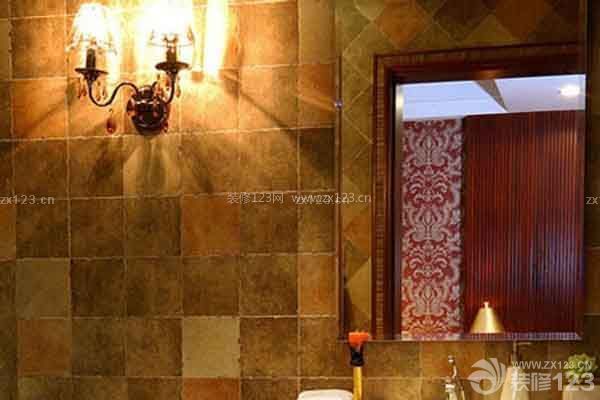 裝修tips:復(fù)古色調(diào)的彩色瓷磚與大理石地面拼貼出這一具有復(fù)古感覺的衛(wèi)浴空間,特別是墻面上的壁燈為這個衛(wèi)生間添加了不少復(fù)古氛圍,簡約的整理臺也顯出一種異域氣質(zhì)。