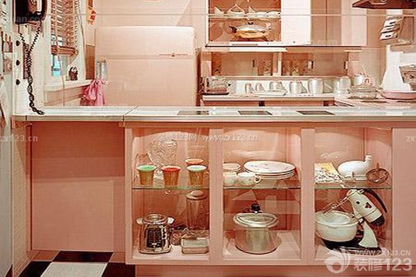 公主氣質的家庭廚房裝修顯得精致小巧,一眼望去透視整個小廚房設計,搭配了時尚的玻璃元素,講現代的風格結合在粉嫩的童話世界中,適合具有少女情節的現代年輕人,黑白經典的地板制造出英倫的氣質風范,精致的小廚房設計被粉紅色的浪漫所籠罩。