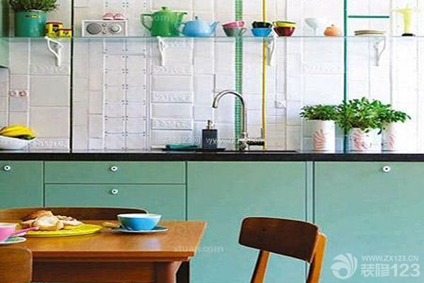 童話般的色彩搭配賦予家庭小廚房裝修新的設計理念 ,廚房的餐具像是玩具模型一樣精致可愛,加上充滿生氣的綠色植物的裝扮,讓家庭廚房裝修瞬間充滿活力,感染著整個家庭氛圍。