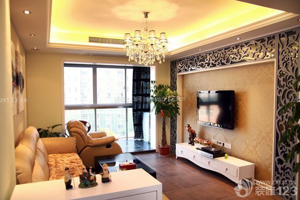 因為視覺的關系,墻面理所當然地成為重點。但四面墻也不能平均用力,應確立一面主題墻。主題墻是指客廳中最引人注目的一面墻,一般是放置電視、音響的那面墻。在主題墻上,可以運用各種裝飾材料做一些造型,以突出整個客廳的裝飾風格。主題墻是客廳裝修的“點睛之筆”,有了這個重點,其他三面墻就可以簡單一些,假如都做成主題墻,就會給人雜亂無章的感覺。