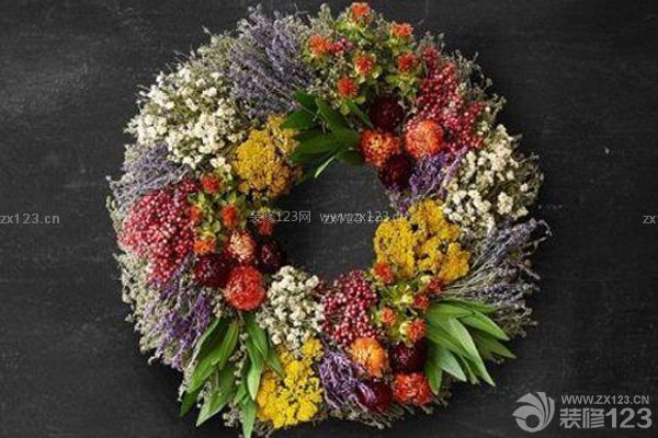 多種花卉搭配出五彩繽紛的美麗花環(huán),顯得生機勃勃。