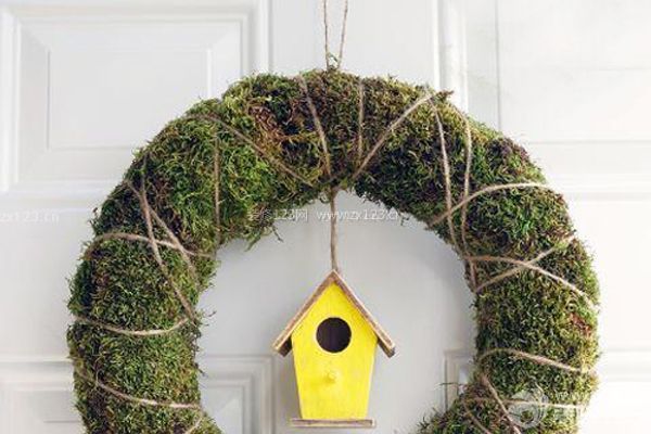 花環(huán)的中間掛一只小小的鳥舍,呼喚春天的到來。