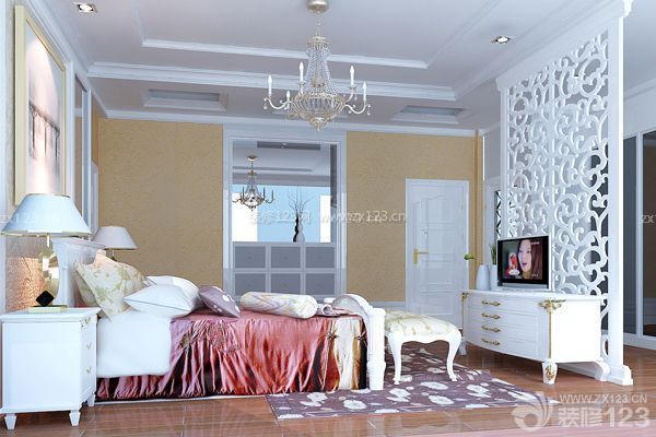客廳臥室隔斷1:鏤空的雕花設計賦予這款隔斷更多韓式風格的浪漫情趣。精致唯美的客廳臥室隔斷效果圖帶給人舒心的視覺感受,既起到了劃分空間的作用,同時與整個家居裝飾風格遙相呼應,裝飾效果極佳。