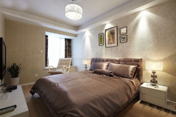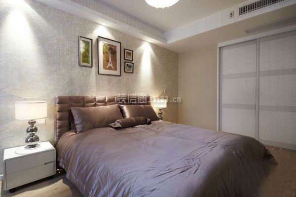 主臥墻面則是采用的墻紙飾面,簡潔素雅