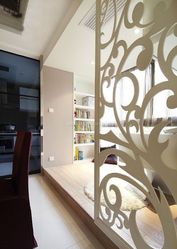 這里原本是個書房,因為會影響整體的采光再加上主人家對書房的使用性不強,所以就被要求改為休閑平臺,再局部做點嵌入式收納空間,感覺很不錯~