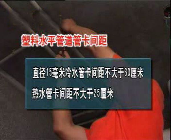 施工原則(5):水管鋪設(shè)完成后,封槽前,要用管卡固定,冷水管卡間距不大于60厘米,熱水管卡間距不大于25厘米。