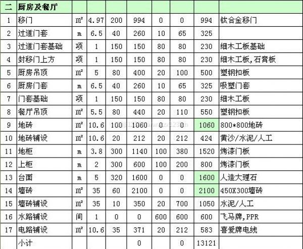 裝修之前的裝修預算表,各位業主一定要認真去做好,同時要貨比三家,選性價比最高的裝修公司來做。對于家裝費用的控制,關鍵還是材料費用的控制。大家不妨了解一下具體的人工及材料價格,這樣心里有數,就不會中裝修公司的價格陷阱了。