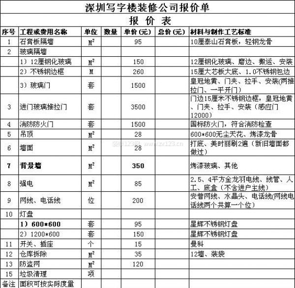 深圳裝修公司報價一般都包括哪些哪些方面呢?細化到寫字樓裝修,深圳裝修公司報價就相應地會細化到寫字樓裝修報價。本文就問您介紹深圳寫字樓裝修報價。