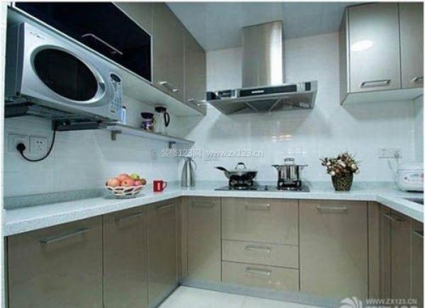 小戶型的廚房,主要是指6平米以下的廚房。包括:面積在2至3平米的迷你公寓的廚房,3到4平方米的一室一廳的廚房,4到5平方米的兩室兩廳和三室兩廳的廚房。這種面積的廚房,功能上一般只考慮備餐的作用。少數可以用活動擱板作出簡單的就餐區。裝修時的一個整體原則就是簡約派。風格切忌雜亂,以直線條的現代風格是最好的選擇。顏色可以高調也可以淡雅,但是色彩一定要單一一些。如果希望色彩上略有變化,那么至少也要保持色調的統一。