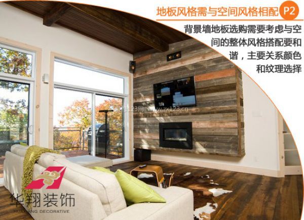 背景墻地板選購需要考慮與空間的整體風(fēng)格搭配要和諧。例如,整體裝修風(fēng)格比較古典、復(fù)古,地板選擇時就選顏色較深、做舊效果比較突出的。如整體風(fēng)格是簡約清新的,就可選顏色較淺的地板。