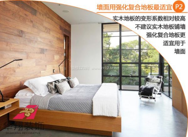 由于實木地板的變形系數(shù)相對較高,因此不建議把實木地板鋪在墻面上,強化復(fù)合地板更適宜用于墻面鋪裝。不過,也要注意不是所有的強化地板都可以上墻的,選購時要向地板銷售人員問清楚。