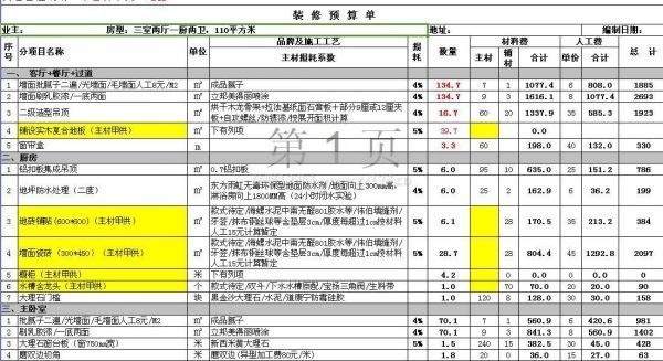 想要更加詳細的110平米裝修預算表,就請點擊:110平米裝修預算
