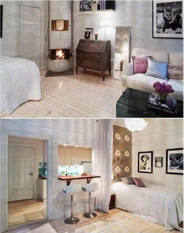 臥室就是用紗簾隔開而成,到了夜晚,拉上紗簾,這便是屬于你的一個人溫馨的私人空間。拉開紗空,墻壁上的幾幅裝飾畫特別顯眼,這樣的裝飾能體現出房主人的沉穩和大氣。