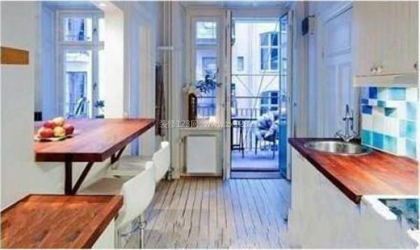 廚房和臥室只有一墻之隔,在他們中間開了個窗口,裝修一個“桌子”,再加上若干高角椅,既時尚又實用,在閑暇的時候坐下來慢慢享受美食帶來的快樂。