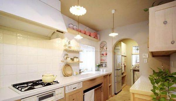 編輯點評:狹長的廚房空間是常見的戶型,在這里可以設計一字型操作臺,木質的櫥柜搭配白色臺面以及白色墻磚,看起來簡單樸素,但卻亦是樣樣俱全。