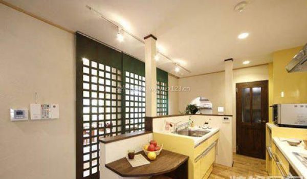 編輯點評:廚房選用了兩列型的布局,明亮之余使用起來也方便。打開盡頭的門就是儲物室。左邊還有一個雜物間。在色彩上淺黃色與綠色相搭配。廚房一側的隔板可以解決一個人就餐,看書的問題。