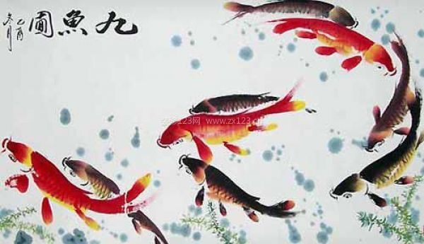 在選擇時必須謹慎,像繪有九條魚圖(“九”取長久之意。“魚”取萬事如意。九條可愛的魚在嬉戲,寓意吉祥)。