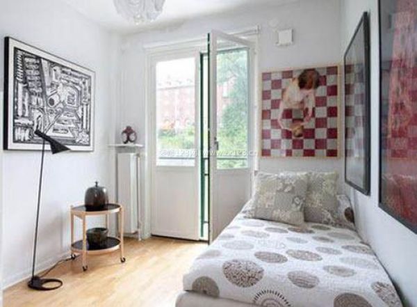 臥室總體的色彩純凈,裝飾卻充滿格調。白色的軟包床搭配米色印花床品,讓臥室暖意十足。墻面上整齊排列的大幅裝飾畫,挑亮了原本平淡無奇的床頭,讓房間充滿了個性。臥室里明快飽滿的用色,就如同彩妝一般,讓空間顯得容顏鮮亮。