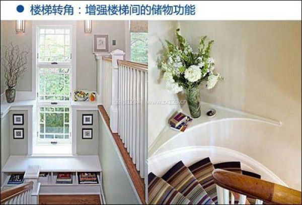 設(shè)計(jì)技巧:樓梯轉(zhuǎn)角設(shè)計(jì)往往會(huì)被大家作為重點(diǎn)裝飾區(qū),像這種設(shè)計(jì)成榻榻米的書臺(tái),也就相當(dāng)于增加了一個(gè)小書房。螺旋造型的樓梯間與墻角額外設(shè)計(jì)的墻角擱架,讓樓梯小角落驚艷無比,弧形的人性設(shè)計(jì),讓行走時(shí)不會(huì)被碰到,不僅可以擺上插花作為樓梯間的裝飾,還能放上幾本小書讓腳步留住。