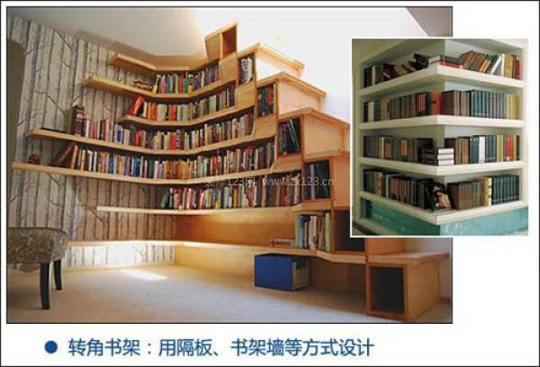 設(shè)計(jì)技巧:轉(zhuǎn)角書房多應(yīng)用于小戶型中,可以利用臥室轉(zhuǎn)角、客廳轉(zhuǎn)角、陽臺(tái)轉(zhuǎn)角等小空間對(duì)其改造,再利用轉(zhuǎn)角的工作臺(tái),設(shè)計(jì)成一個(gè)小戶型的書房。也正好了擺脫了角落空間的單調(diào),增加其豐富性。