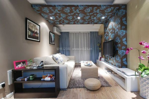 白色的沙發(fā),簡(jiǎn)潔卻又不失格調(diào),電視背景墻采用了對(duì)比強(qiáng)烈的大花壁紙,視覺(jué)沖擊更強(qiáng)。邊幾上小小的裝飾品,電視柜旁邊顏色艷麗的花,都體現(xiàn)出了優(yōu)雅的氣質(zhì)。