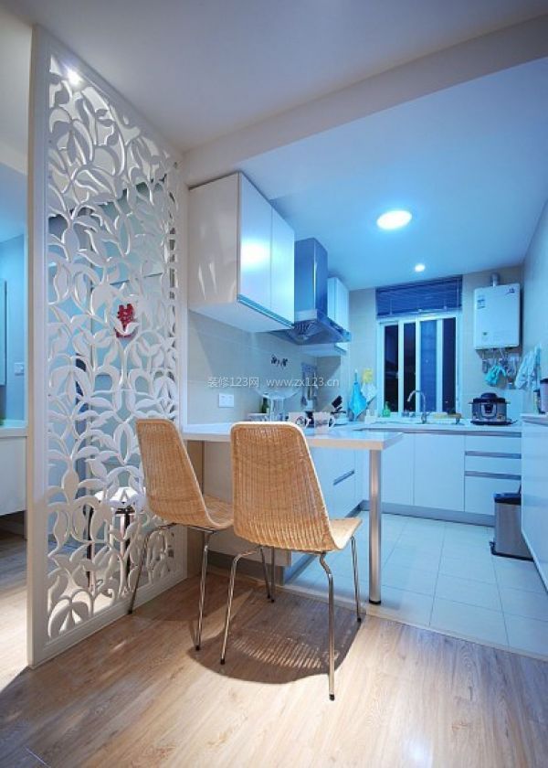 由于面積大小的限制,餐廳摒棄了傳統(tǒng)的做法而采用吧臺(tái)的形式,更加具有現(xiàn)代感,也把整個(gè)家居氛圍渲染得恰到好處。