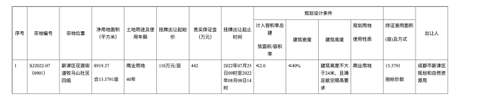 四、已注冊為網上報名用戶的競買申請人須在2022年08月05日16時之前足額交納競買保證金,2022年08月05日16時30分之前通過成都市公共資源交易服務中心門戶網站(https://www.cdggzy.com/)土地交易網上報名系統完成網上報名手續。(報名咨詢電話:028-85987887)