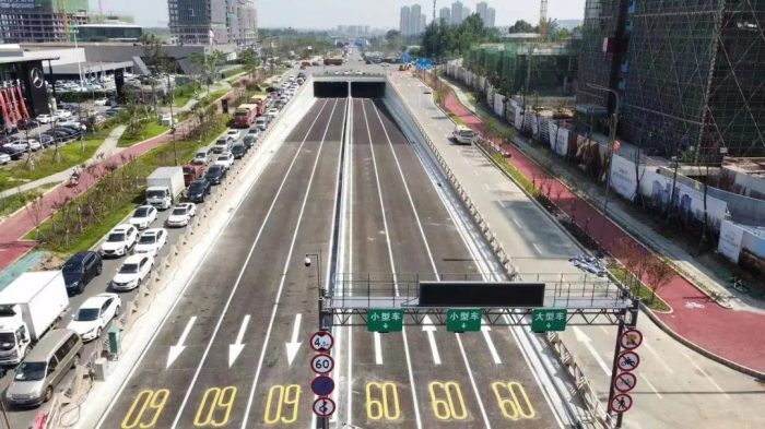 該工程于2019年10月開工建設(shè),是成都市委市政府的重大民生工程之一,也是連接成自瀘高速成都收費(fèi)站與三環(huán)路的重要道路,項(xiàng)目全長約1363米,下穿隧道全長約1097米。下穿隧道為雙向六車道,輔道為雙向四車道,設(shè)計(jì)時(shí)速60公里/時(shí)。