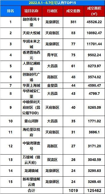 8月第1周成都商品房銷量出爐!融創春風十里榮獲榜首!