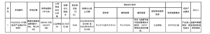 已注冊為網上報名用戶的競買申請人須在2022年09月08日16時之前足額繳納競買保證金,2022年09月08日16時30分之前通過成都市公共資源交易服務中心門戶網站(https://www.cdggzy.com/)土地網上報名系統完成網上報名手續,并請于2022年09月13日14時提前登錄網上掛牌出讓系統,根據系統提示參與競價或查看交易結果。(報名咨詢電話:028-87910621)