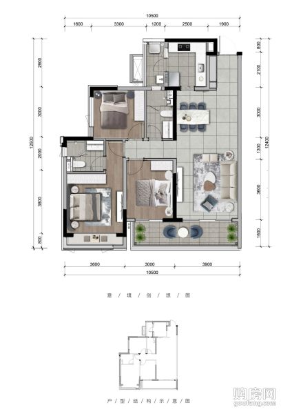 華潤置地未來之城A02戶型(3室2廳,108平,南)