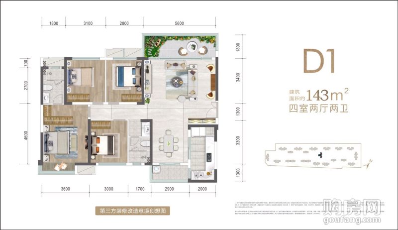 錦瀾悅山臻園4室戶型(4室2廳,143平,東)