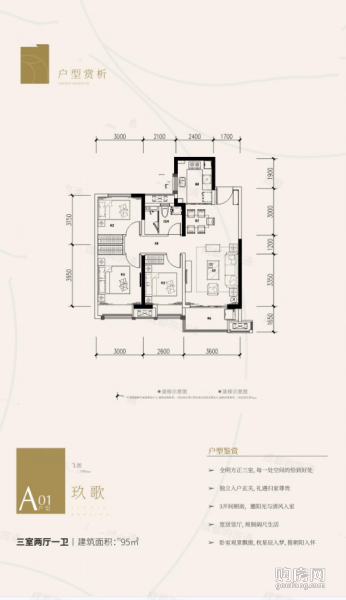 海倫堡玖悅府A01戶型(3室2廳,93平,南北)