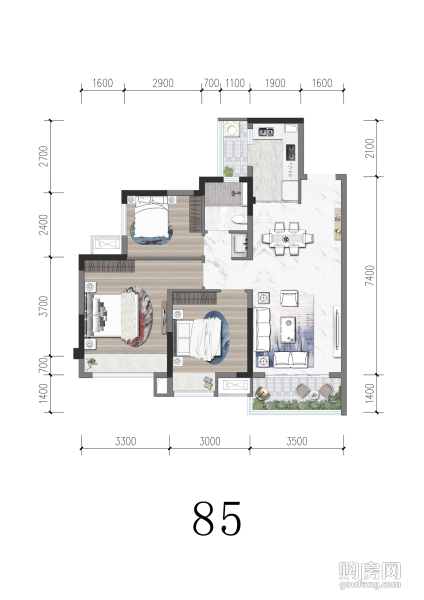 85戶型(3室2廳,85平,東)