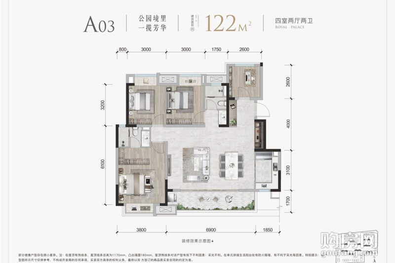 北京城建國(guó)譽(yù)府A03戶型(4室2廳,122平,南北)