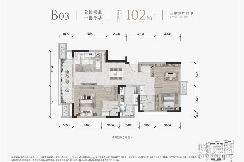 北京城建國(guó)譽(yù)府B03戶型(3室2廳,102平,南北)