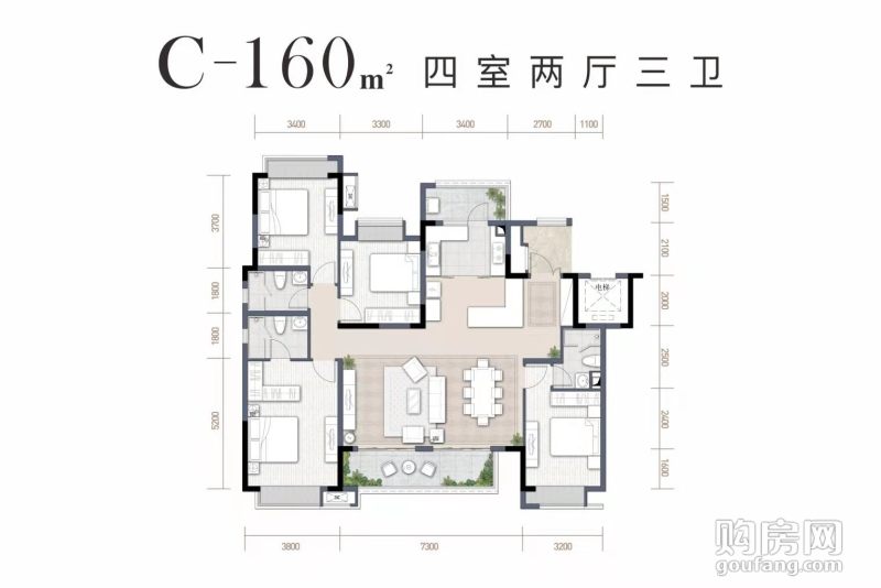 4室2廳3衛,C-160(4室2廳,160平,南北)