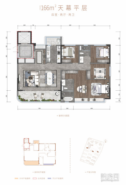 4室2廳2衛(wèi),大平層166平米(4室2廳,166平,南北)