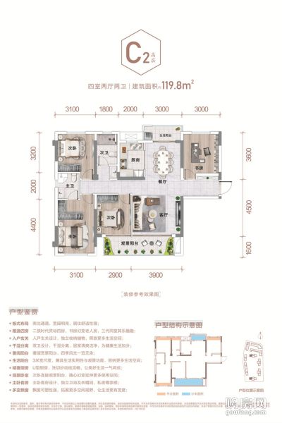 天府麓城C2戶型(4室2廳,119.8平,南)
