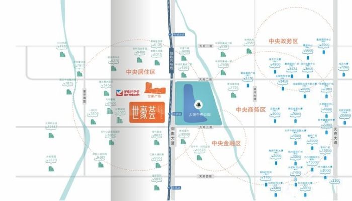 世豪翡麗位于成都市高新區天府二街大源中央公園星巴克旁,在以世豪翡麗為中心的黃金兩公里內,是整個成都高端資源最密集的板塊。商業配套有伊藤洋華堂、世豪廣場、建發鷺洲里,可以滿足業主的日常生活購物需求。交通配套有地鐵5號線大源站,多條公交線路,還有G32路快速公交,交通方式多樣,通達全城,交通便利。醫療配套有成都市第一人民醫院為三甲級醫院,保障家人健康。生態資源有大源中央公園,環境優美。學校配套有成都七中高新校區、石室天府中學、石室天府中學附屬小學、墨池書院小學、霍森斯小學、金蘋果等,守護孩子成長。