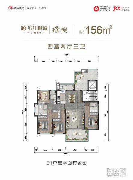 中化潤達豐濱江樾城E1戶型(4室2廳,156平,東)