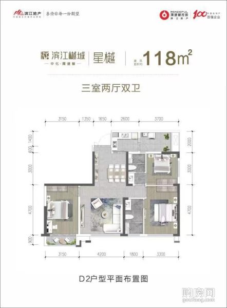 中化潤達豐濱江樾城D2戶型(3室2廳,118平,東)